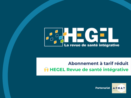 L'AFNAT a signé un partenariat avec la Revue HEGEL de santé intégrative. Éditée chez Cairn, c'est une revue en ligne : https://stm.cairn.info/revue-hegel?lang=fr